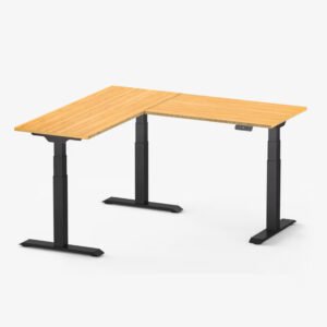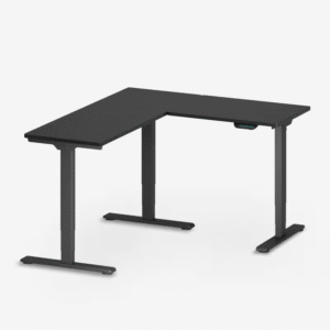 مكتب على شكل حرف L قابل للوقوف يوفر مساحة عملية ومرونة عالية في العمل، مع تصميم عصري ومتين.